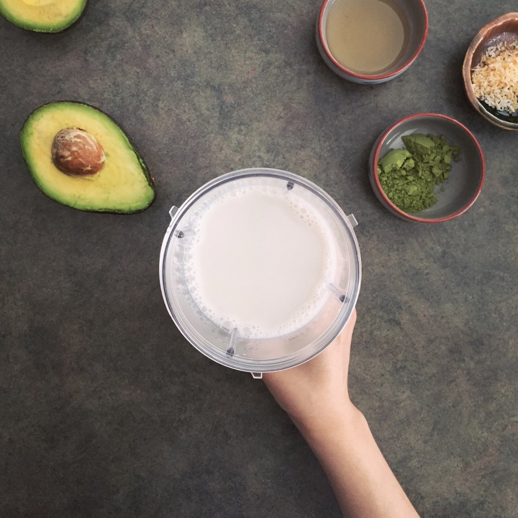 - Add in walnuts, avocado and honey. Stir in matcha paste.