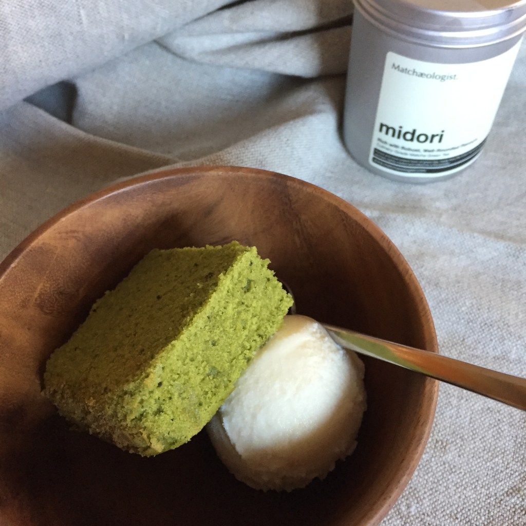 Note: add a scoop of vanilla ice cream to compliment your beautiful matcha cake like this!