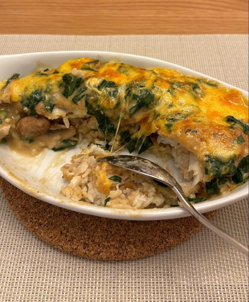 This is another one of those dinners where I created something dreamy from random leftover fridge ingredients. Without thinking, I decided to make one of my husband’s favorite foods: cheesy baked rice dishes.