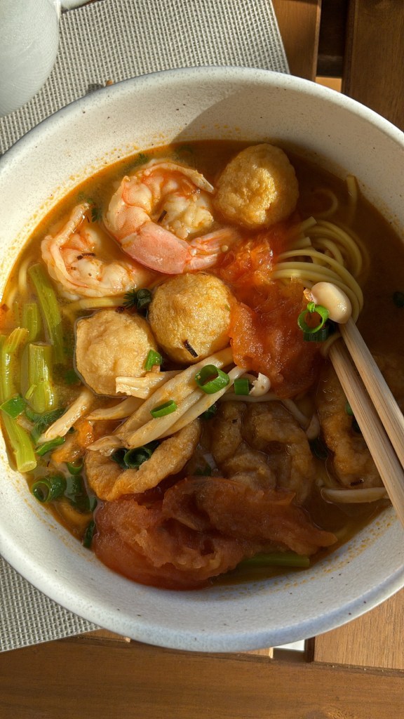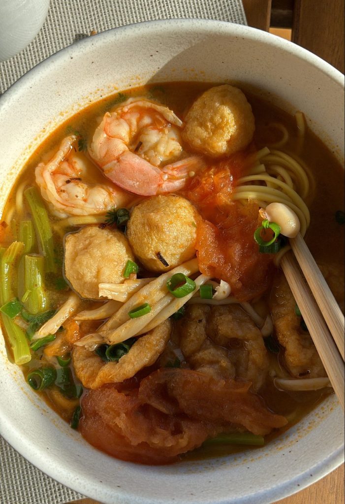 - Toppings of choice (ie. fish puffs, fish balls, prawns, seafood mushrooms, leafy vegetables)